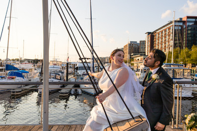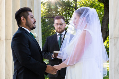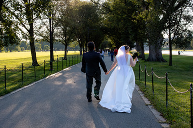 All afternoon it went like this: the bride, theatrical and silly, sassed her groom, who humored her with the deepest affection. She played peekaboo under her veil, and he quietly grinned. She powdered his nose in the car. and he responded with a wry smile. She had a Cinderella moment and relished the sight of him kneeling at her feet strapping on her heels—and laughed again as she made him slip her feet back into her sneakers after the ceremony. Hours later, at an arcade, the tables were turned as he pinned her to the wall next to the whack-a-mole game. It was damn sexy, and I felt privileged to bear witness to their wonderful relationship. Here's a selection of images from that day. It started at the National Gallery for a couple's session, continued for the small ceremony at the DC War Memorial, and finished at the Wharf.